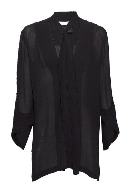 The Fall Back Shirt has arrived at The Annex and available now in black. Crafted from 100% Silk, this relaxed blouse features a v neckline with neck tie, relaxed cuffs and drop back hem. A perfect style to tuck or leave loose and relaxed.