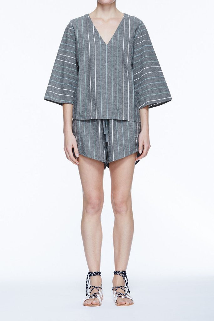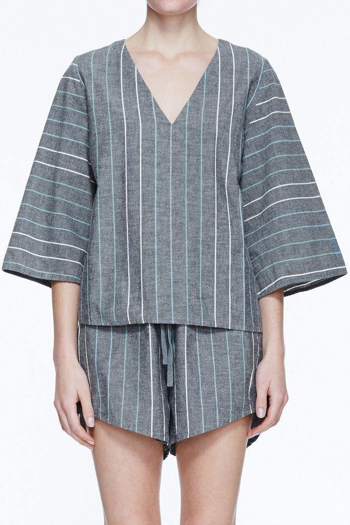 The Flared Sleeve Top by Life With Bird is a 3/4 flared sleeve boxy top. Featuring a deep V neck, this style slips over the head with ease. Shop now at The Annex.