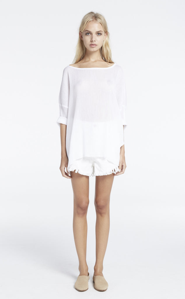 The Halo Top by Zulu and Zephyr has arrived at The Annex and available now in White. Crafted from a lightweight cotton muslin, this relaxed style features a scoop neckline, boxy fit and cuffed drop shoulder sleeves.