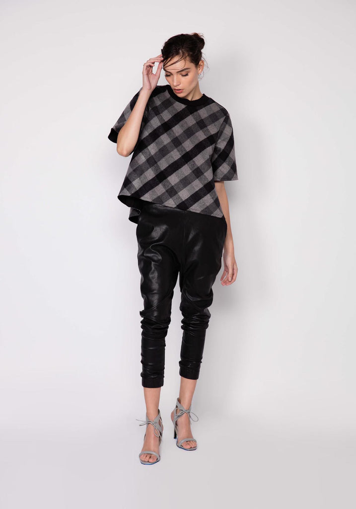 The Immortal Stretch Leather Low Slung Pant by Once Was is now available at The Annex in Black! Featuring a part elasticated waistband, front side seam pockets, back welt pockets, low drop crotch detailing, elasticated gathered ankle cuffs and a tapered fit leg. A must have item this season!