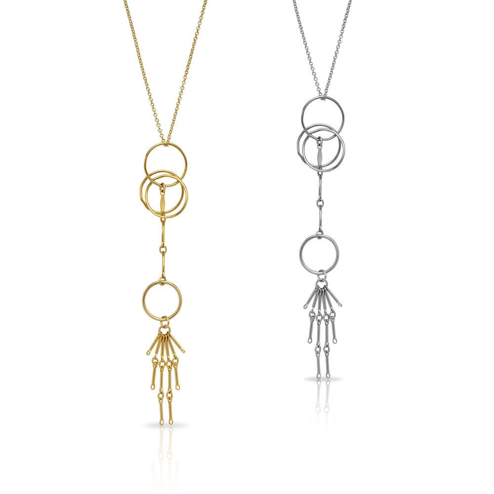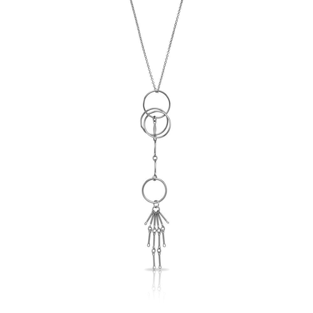 This fine chain necklace by Petite Grand is available now at The Annex in Sterling Silver. The Love Entangled Necklace features a delicate chain tassel and loop detailing that hangs from a long, 8cm drop.