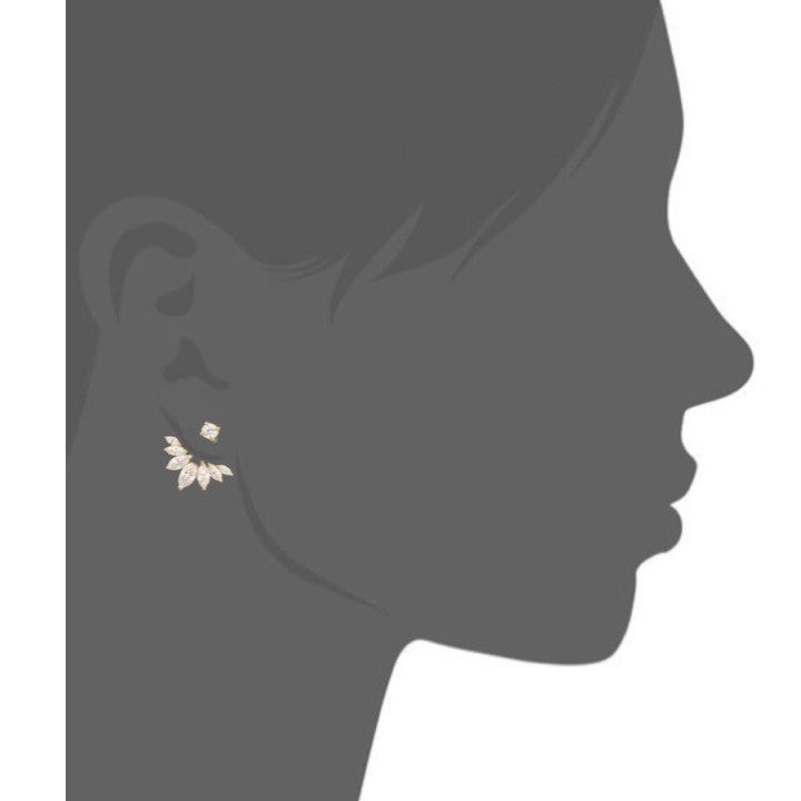 The Marquise Ear Jacket by Shashi is crafted with 18K gold plated sterling silver and features a double sided style with post closure through the back and crystal detailing. Available now at The Annex in Yellow Gold!