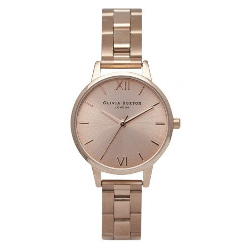 The Midi Dial Rose Gold Bracelet watch by Olivia Burton is a great way to add a little piece of luxury to your everyday outfit. This beautiful vintage inspired watch has a large rose gold sunray face with and comes on a silver link bracelet.