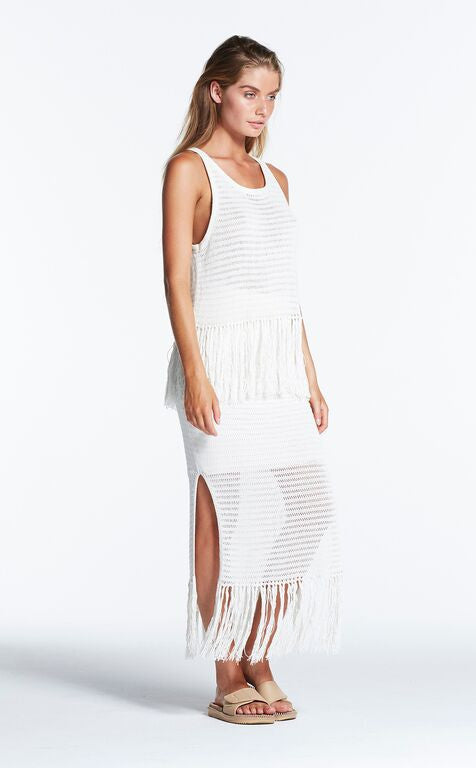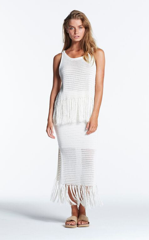 The Moana Tank by Zulu and Zephyr is made in a Cotton Crochet. This amazing summer style features a scoop neckline with shoulder straps, gorgeous hem fringing and is a loose casual fit. This top is not lined making it perfect to layer over your swimwear for a chic beach top!