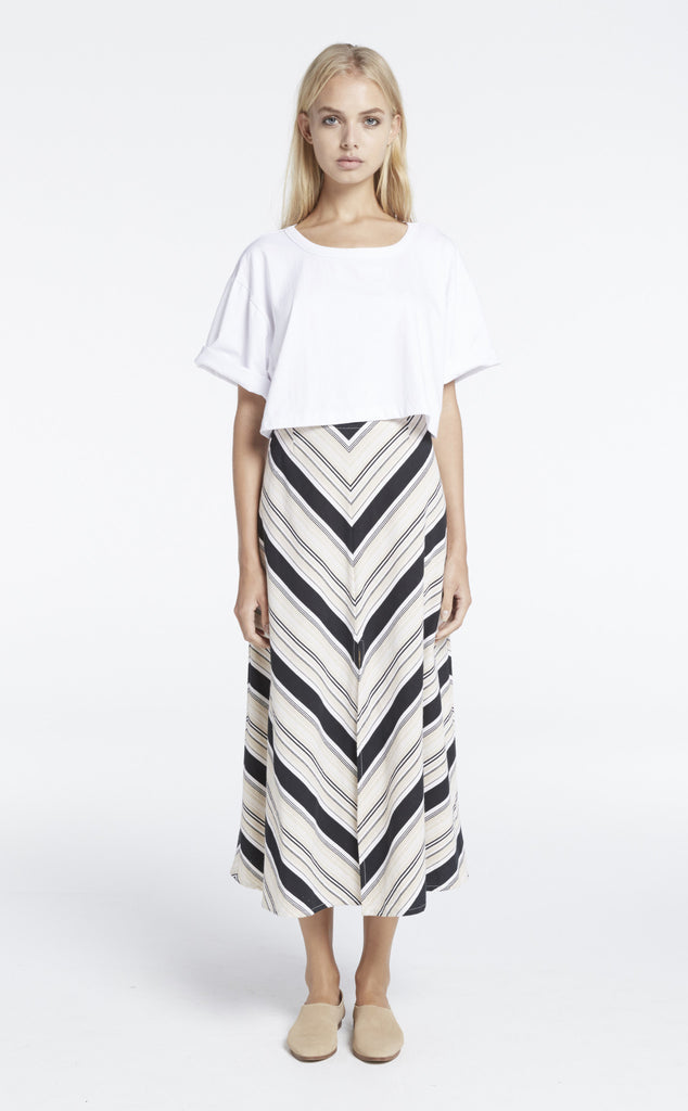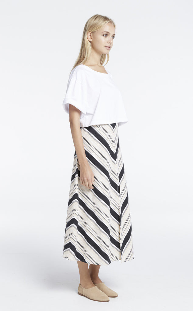 In Zulu & Zephyr's exclusive print is this A-Line midi length skirt. A casual summer skirt in a textured cotton fabric. This has front & back hem splits