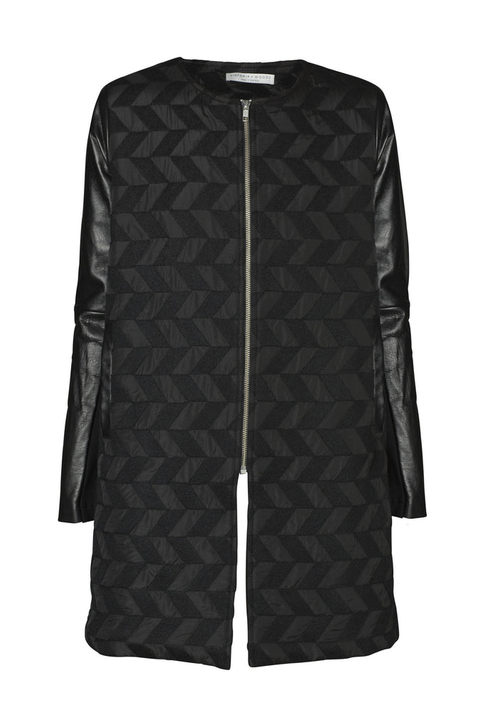 A seasons stand out, the phantom coat has a boxy cut body with fitted sleeves in fine Italian leather. Made from a soft wool blend with a textured black chevron weave.