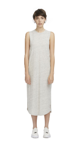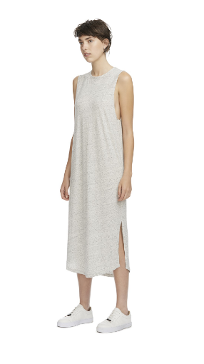 The Quin Marle Dress in Oat Marle by C&M CAMILLA AND MARC is a casual cotton dress for everyday wear. It features a relaxed fit, side splits at hem and a raw edge on the sleeve. Shop now at The Annex.