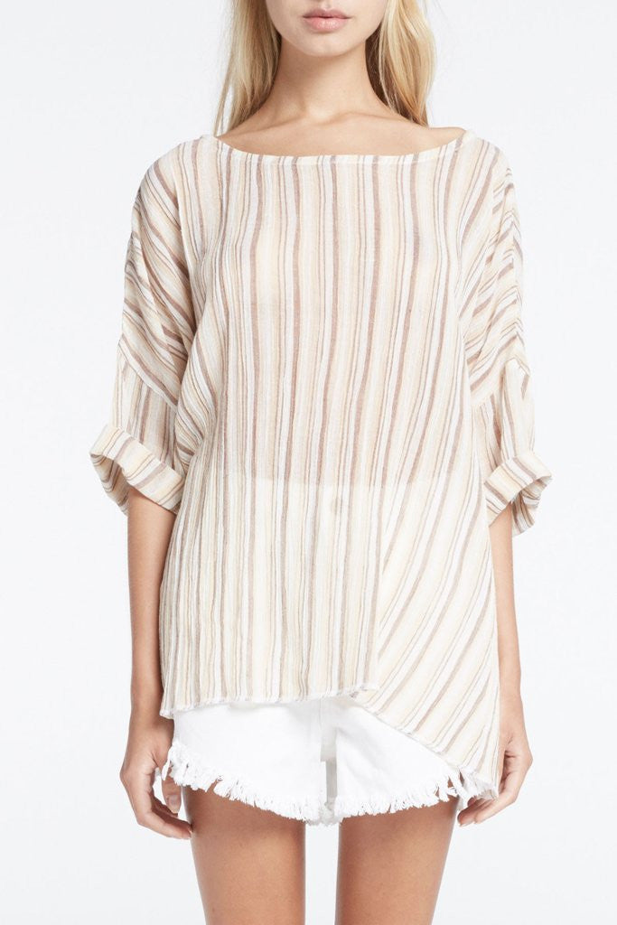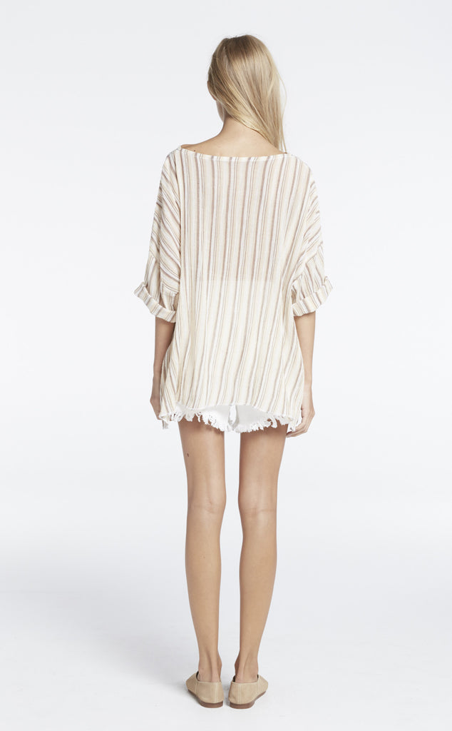 The Ray Top by Zulu and Zephyr has arrived at The Annex and available now in the mutli stripe. Crafted from a lightweight cotton muslin, this relaxed style features a scoop neckline, boxy fit and cuffed drop shoulder sleeves.