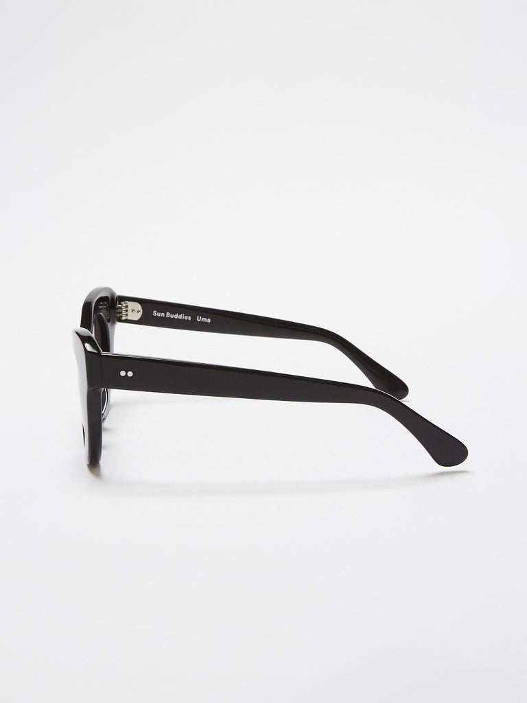 Sun Buddies is a premium sunglasses brand from Sweden. The Uma features a cat eye shaped acetate frame available in 'Black'
